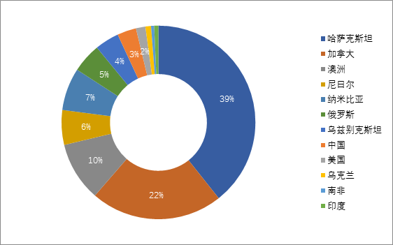 世界主要鈾礦的開采方式包括三種:原位地浸開采,露天開采及地下開采。世界約48%的天然鈾通過原位地浸開采生產出來,46%來自于常規開采方法(露天開采及地下開采)生產出來,6%作為其他礦產品副產品采出。 鈾礦開采生產工藝示意圖 2017年世界各國產鈾比例(總產量為59,531噸鈾) 原位地浸開采 原地浸出采鈾是將溶浸液通過注液鉆孔注入到可滲透的含礦含水層,使溶浸液在滲透過程中與鈾接觸并進行溶解反應,生成含鈾溶液,并從抽液孔被抽至地表,輸送到車間加工處理后獲得鈾產品的流程。 ? 適用賦存于含水及可滲透砂巖中鈾礦物開采。 ? 圈定鈾礦的邊界品位為0.001%。 ? 根據浸出機理的不同,分為酸法和堿法開采。 開采的適用條件: (1)含礦巖性應為具有滲透性的砂巖、砂礫巖。礦體賦存于地下水位以下的含礦含水層中。充水性和滲透性是地浸是否可行的決定性因素。 (2)礦體產狀平緩(傾角一般小于10度),礦體頂底板應是良好封閉的不透水層。 (3)礦床平米鈾量應在最低經濟指標之上,含礦含水層中碳酸鹽含量>2%則不宜用酸法浸出。圍巖以長石石英質或石英質砂巖最宜。 (4)按照目前鈾價,開采礦體最大埋藏深度不宜超過400-600m。 浸出機理 酸法 主要使用硫酸作為溶浸劑,礦石中鈾隨溶浸液pH值的下降2以下后從沉淀態變為溶解態,生成硫酸鈾酰溶液。含礦含水層中碳酸鹽含>2%則不適用。 堿法 主要使用碳酸氫銨作為溶浸劑,礦石中鈾隨溶浸液pH值上升到9以上后礦石中的6價鈾與碳酸鹽中的碳酸根(CO32-)絡合,生成碳酸鈾酰溶液。產品液鈾含量低,銨鹽也造成地下水污染。 二氧化碳+氧氣 原理是氧氣氧化礦石,在地下水中加入二氧化碳后,形成的碳酸氫根(HCO3-)離子與礦層中的鈾發生反應,使鈾溶解在溶液中,也屬于堿法浸出分類。 細菌浸出 主要選用氧化鐵硫桿菌,在浸出鈾的過程中,主要起間接催化作用,能促進黃鐵礦和硫酸亞鐵的氧化,促進6價鈾生成。可降低酸耗。需配合酸法使用,但并非一種獨立的浸出方法。 地浸的主要優點: (1)開采方法安全簡單、工藝流程短。采礦階段無需搬運、破碎礦石,水冶階段無需磨礦和固液分離,縮短了采冶工藝流程,直接生產成本低。 (2)礦山建設周期短、基建投資少,勞動強度低、自動化程度高,固定資產折舊低。 (3)環境污染小。一是抽注基本平衡,地浸溶液是在閉路管道內循環使用,其廢水排放量顯著減少;二是放射性粉塵污染得到徹底改善;三是尾渣和廢氣的污染減到了最低程度。 露天開采即一個移走礦體上的覆蓋物,從敞露地表的采礦場采出鈾礦物的過程。主要適用于主礦體埋藏較淺的鈾礦床開采。 主要優點包括: 1. 基建周期短。2-4年/大型 6-8月/小型。 2、開采空間大,勞動生產率高。比地下開采高2-10倍。 3、礦石損失、貧化率較小。損失率3%-5%貧化率5%-8%。 4、開采成本低,勞動條件好,生產安全。 主要缺點: 1、開采受到氣候影響大。 2、基建設備投資大。 3、礦山占地多,對地表環境破壞大。 地下開采即通過開掘井巷工程從地下礦床的礦塊里采出礦石的過程,通過礦床開拓、礦塊的采準、切割和回采4 個步驟實現。主要適用于埋藏較深及地表不允許露天開采的鈾礦床。以地壓管理方法為依據,分為空場采礦法充填采礦法、崩落采礦法三大類。