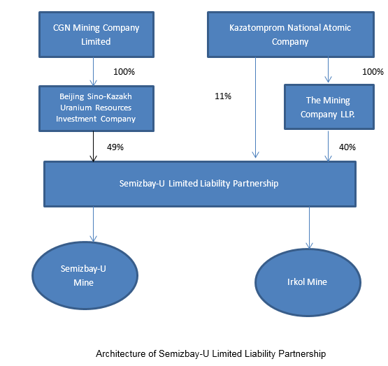 In 2015, CGN Mining Company Limited completed the acquisition of 100% equity interests in Beijing Sino-Kazakh Uranium Resources Investment Company Limited (“Beijing Sino-Kazakh”) with USD 133 million. After the completion of acquisition, the Company now holds 49% equity interests in Semizbay-U Limited Liability Partnership and 49% sales rights of the off-take of uranium products for natural uranium products of two uranium mines in operation and sales (Semizbay-U Mine and Irkol Mine) through Beijing Sino-Kazakh, and became a uranium resource development and trading company with clear main business.